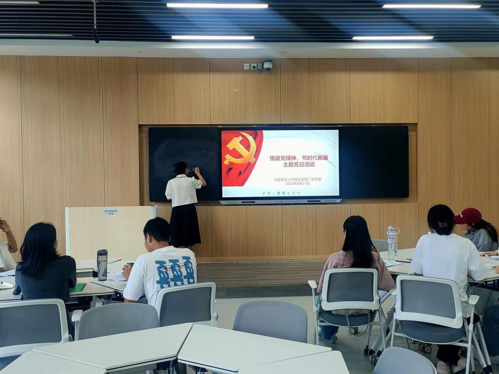 为积极响应校党委组织部《关于在“七一”前后组织开展主题党日活动的通知》的相关要求,6月27日下午,新葡萄8883官网AMG学生第二党支部在社科楼516智慧教室召开“悟建党精神,书时代新篇”“七一”主题党日活动。新葡萄8883官网AMG学生第二党支部书记任婷、全体党员、预备党员参加此次活动。活动由于嘉宁同志主持。