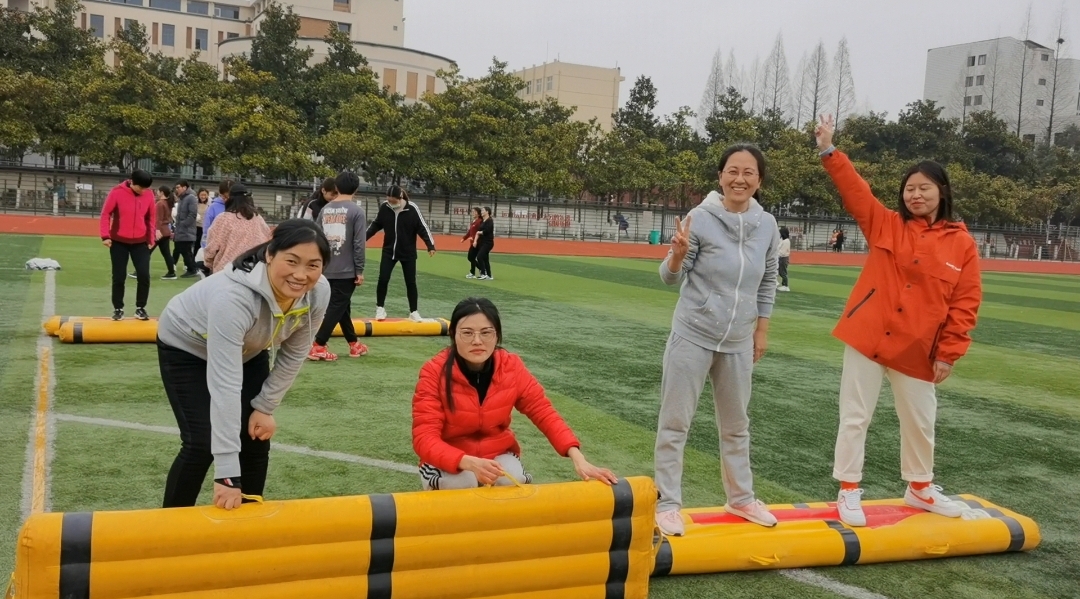 一根绳子,一份努力。新葡萄官网女教师积极参加五人跳绳项目。