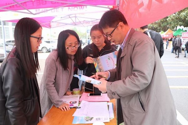 4月14日上午,河南省毕业生就业市场豫南地区分市场暨信阳师范学院2018届毕业生春季双选会在我校人文楼西篮球场举行,本次双选会由河南省教育厅主办,信阳师范学院、信阳市人力资源与社会保障局共同承办。新葡萄官网院长杨云善、团委老师孙绪曙、曹菁菁到场了解企业用人情况、招聘情况。来自制药、教育、金融、文化、建筑、销售、信息技术等行业领域的二百余家企事业单位参加了招聘会,吸引了新葡萄官网多名毕业生前来应聘。