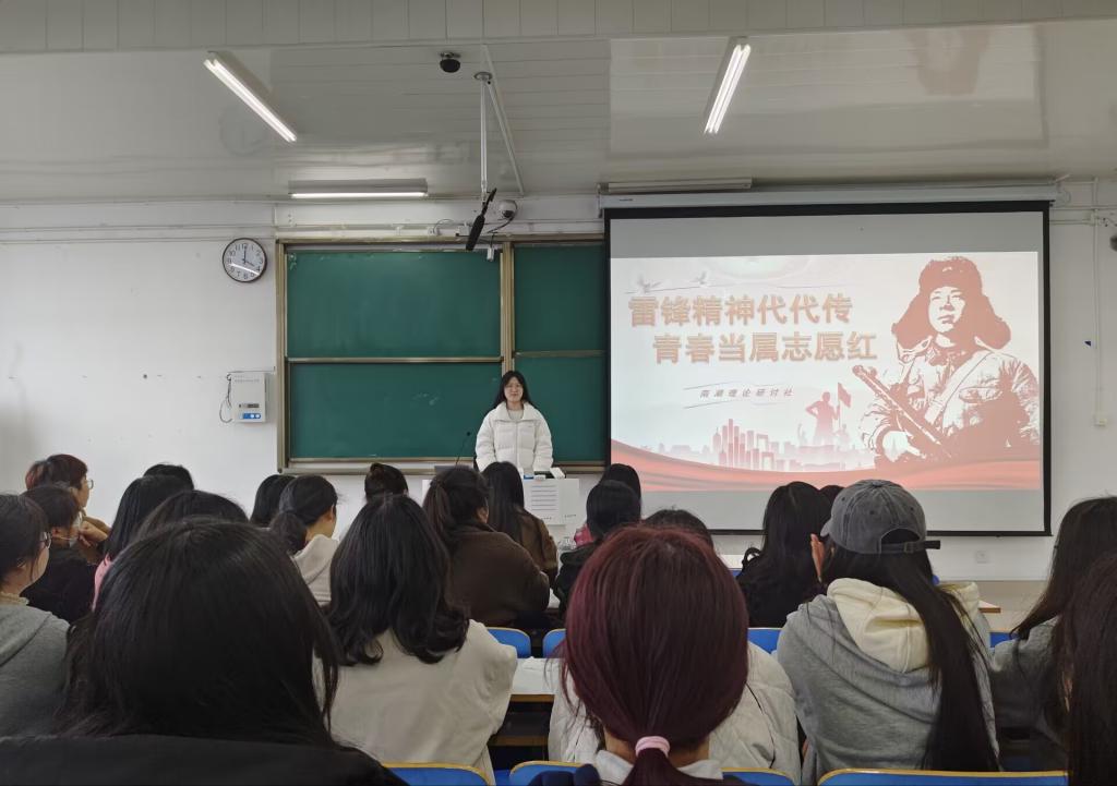 三月春风处处暖,雷锋精神代代传。为进一步传承雷锋精神,增强同学们的志愿服务意识和团结互助精神,3月21日下午,南湖理论研讨社在社科楼514召开“雷锋精神代代传,青年当属志愿红”的主题团课。团支书助理武文雪主持本次团课,社团全体干事成员共同参加。
