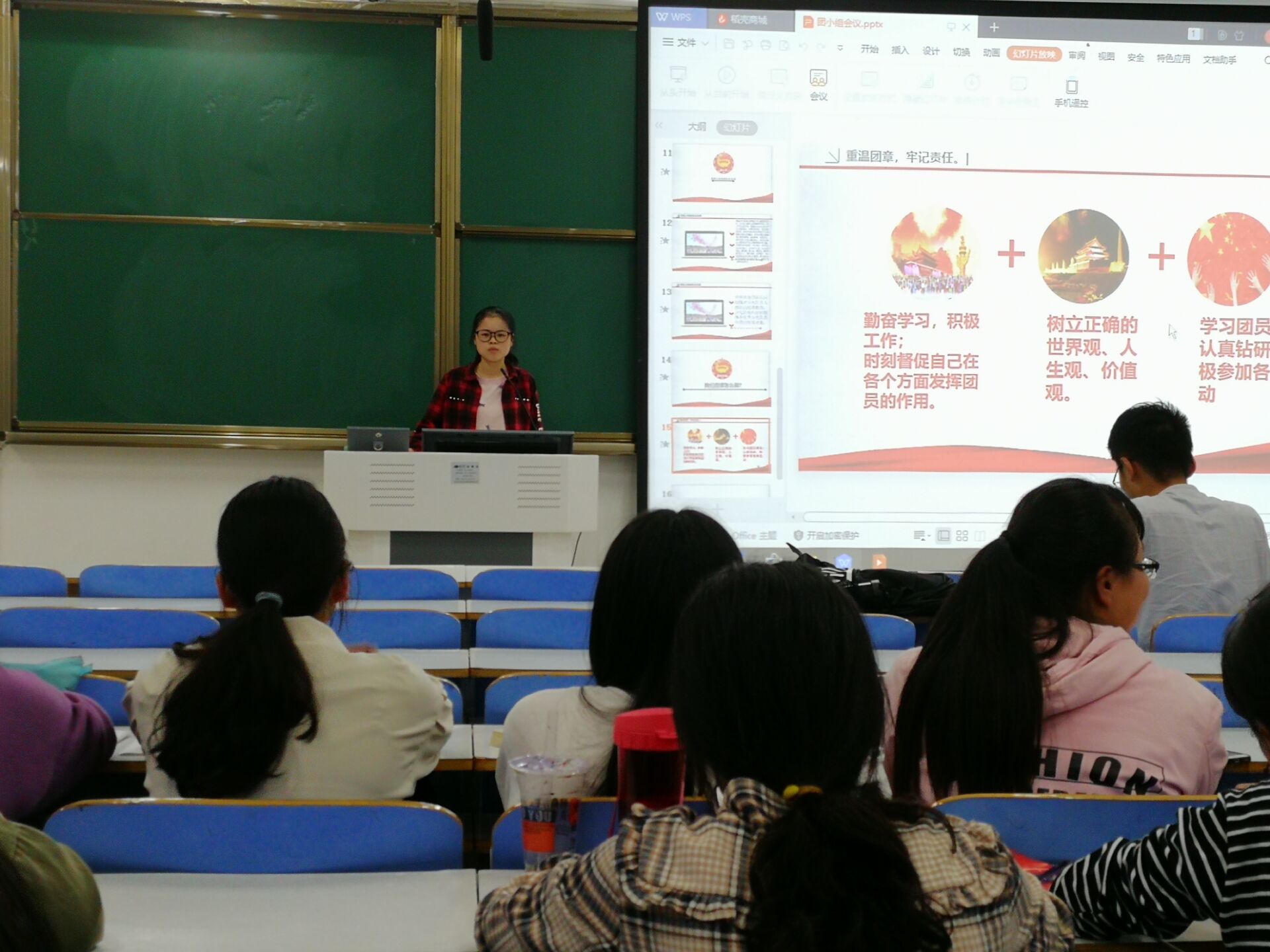 为增强团组织的凝聚力,团结支部成员,促进交流,加强联系,提升其整体素质,4月29日,新葡萄8883官网AMG优秀“青年马克思主义者”学员孙亚茜在社科楼514教室主持了团小组会议,并做了以 “重温团章,牢记责任”为主题,以社会主义核心主义“爱国”为切入点进行了宣讲,2017级思想政治教育一班青年团员参加此次活动。