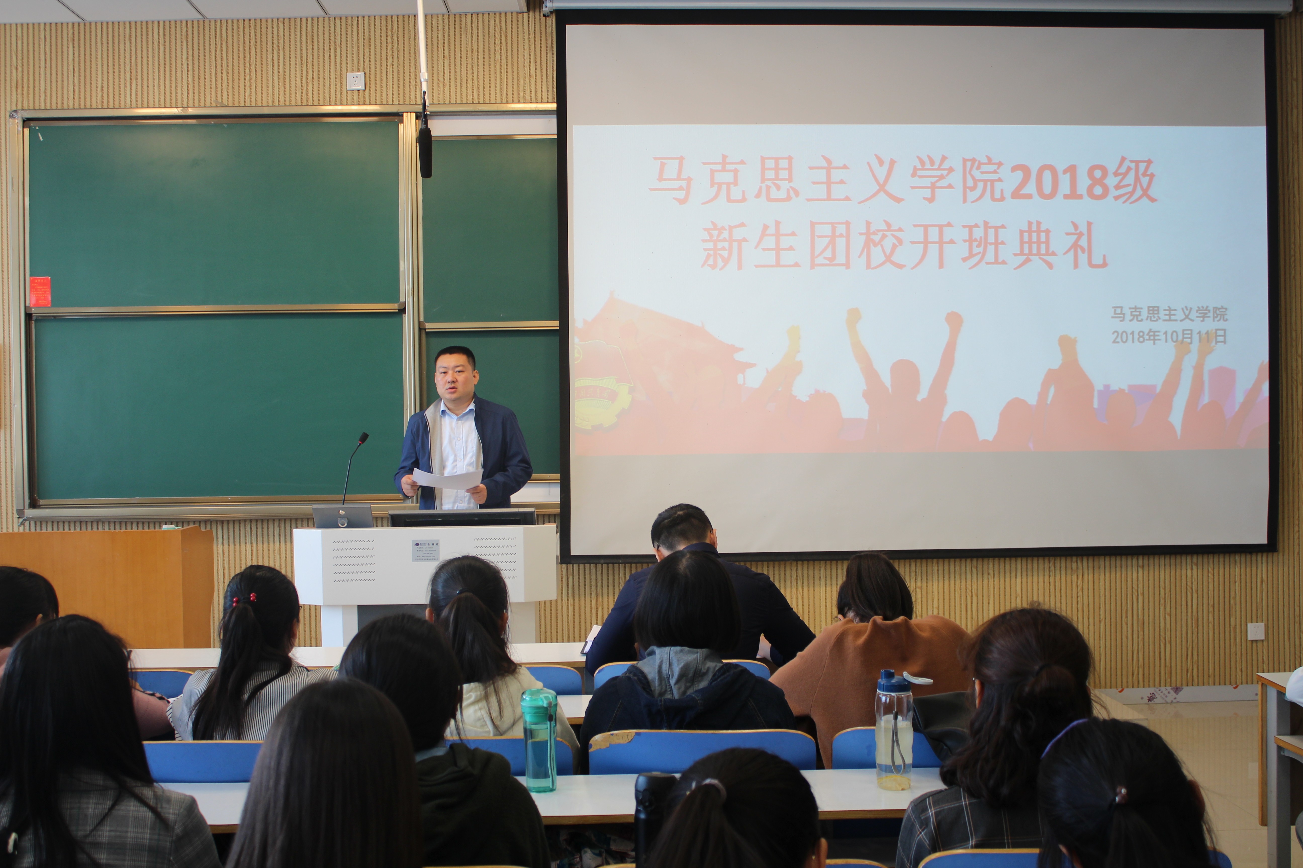 为切实抓好团的十八大精神学习宣传贯彻工作,推动新时代青年开创新局面、实现新发展,10月11日上午,新葡萄官网2018年新生团校开班典礼在社科楼515教室顺利召开。党委副书记何晓坚、团委书记曹栋、2018级辅导员曹菁菁及2018级全体同学共同参加此次典礼。典礼由团委副书记张雅琼主持。