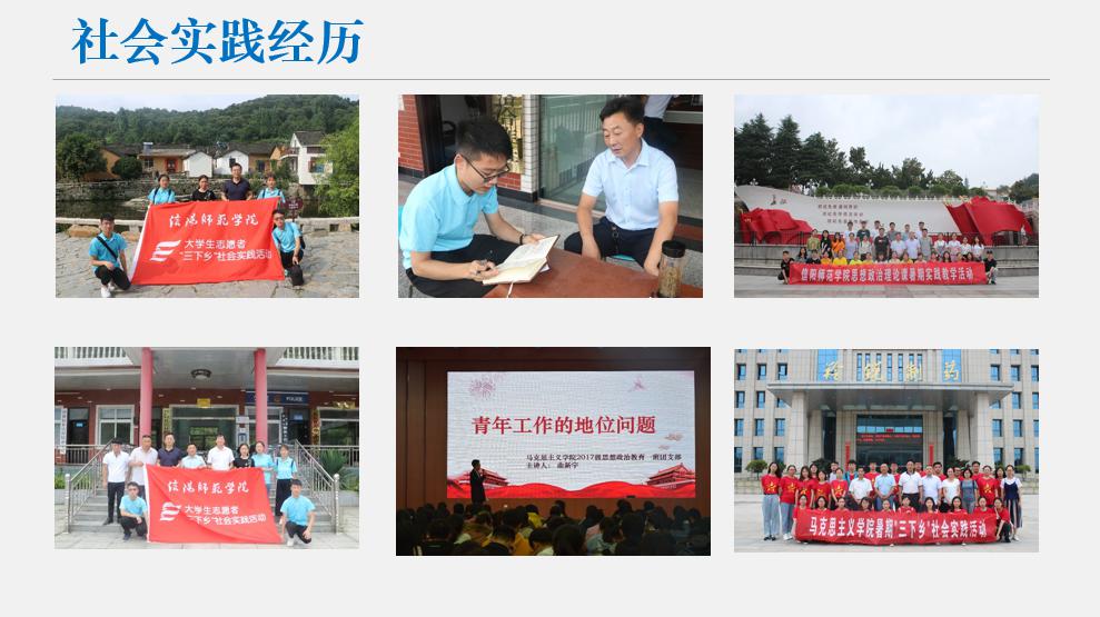 2017-2018年,该同学担任2017级新生军训临时班级负责人,参与组织班级各项工作;10月当选班级学习委员,进入学院学生会学术部、校团委仁杰工作室宣传部任干事。本年度获得信阳师范学院廉政文化建设征文评选活动三等奖、信阳师范学院新葡萄8883官网AMG“新迎十九大 共筑中国梦”书法绘画比赛一等奖、学院“团旗下团干宣讲”二等奖、学院“讲社会主义核心价值观故事”征文比赛优秀作品奖、校团委第十三届仁杰杯征文比赛二等奖、学院干部培训班先进个人、学院“‘读’具匠心,致敬经典”优秀组织者第四十期校刊《大别山青年》宣传工作先进个人。