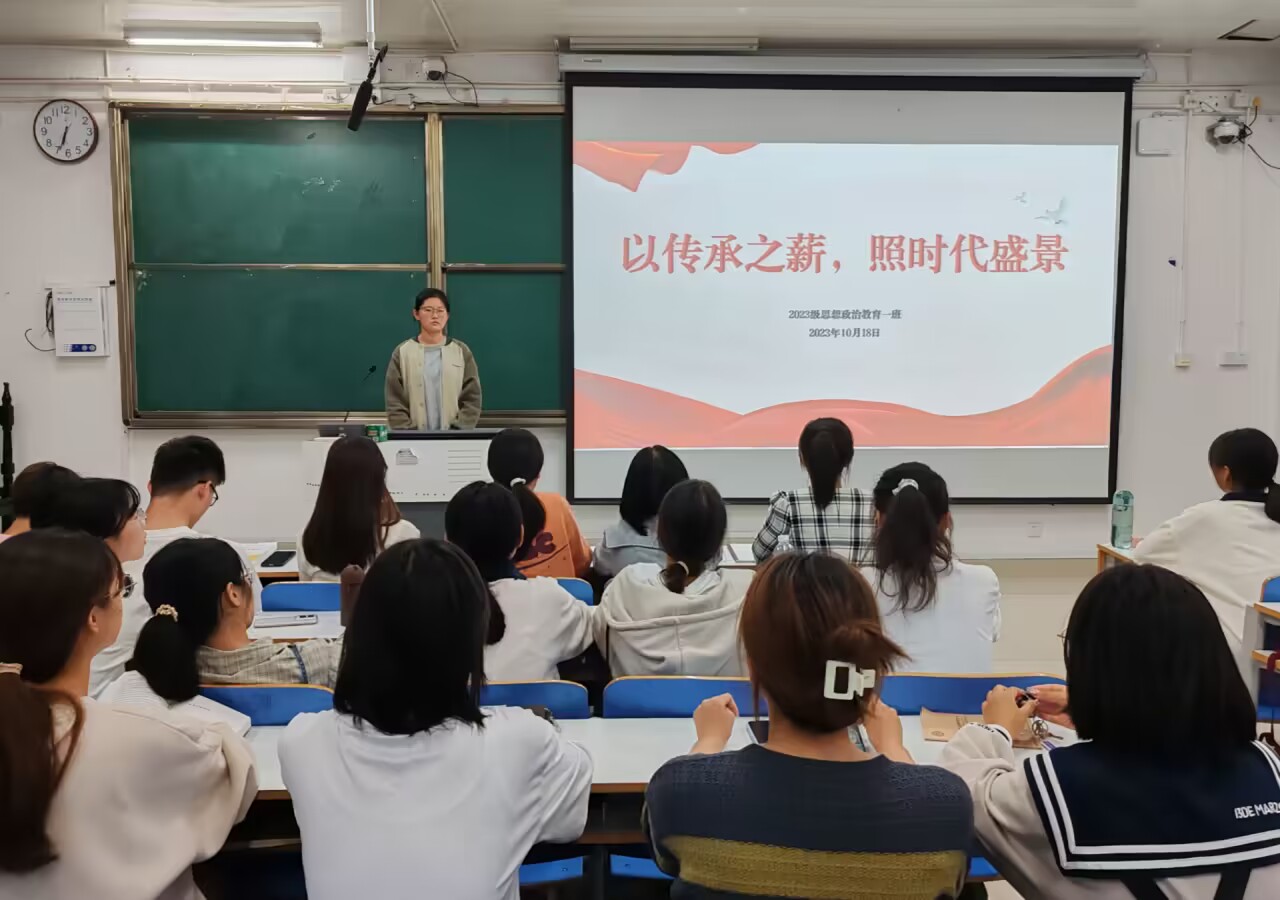 10月16日下午,新葡萄8883官网AMG2023级思想政治教育一班在社科楼515教室召开“以传承之薪,照时代盛景”主题团课。新葡萄官网2023级思想政治教育一班全体同学共同参与本次团课,团课由团支书张卓主持。