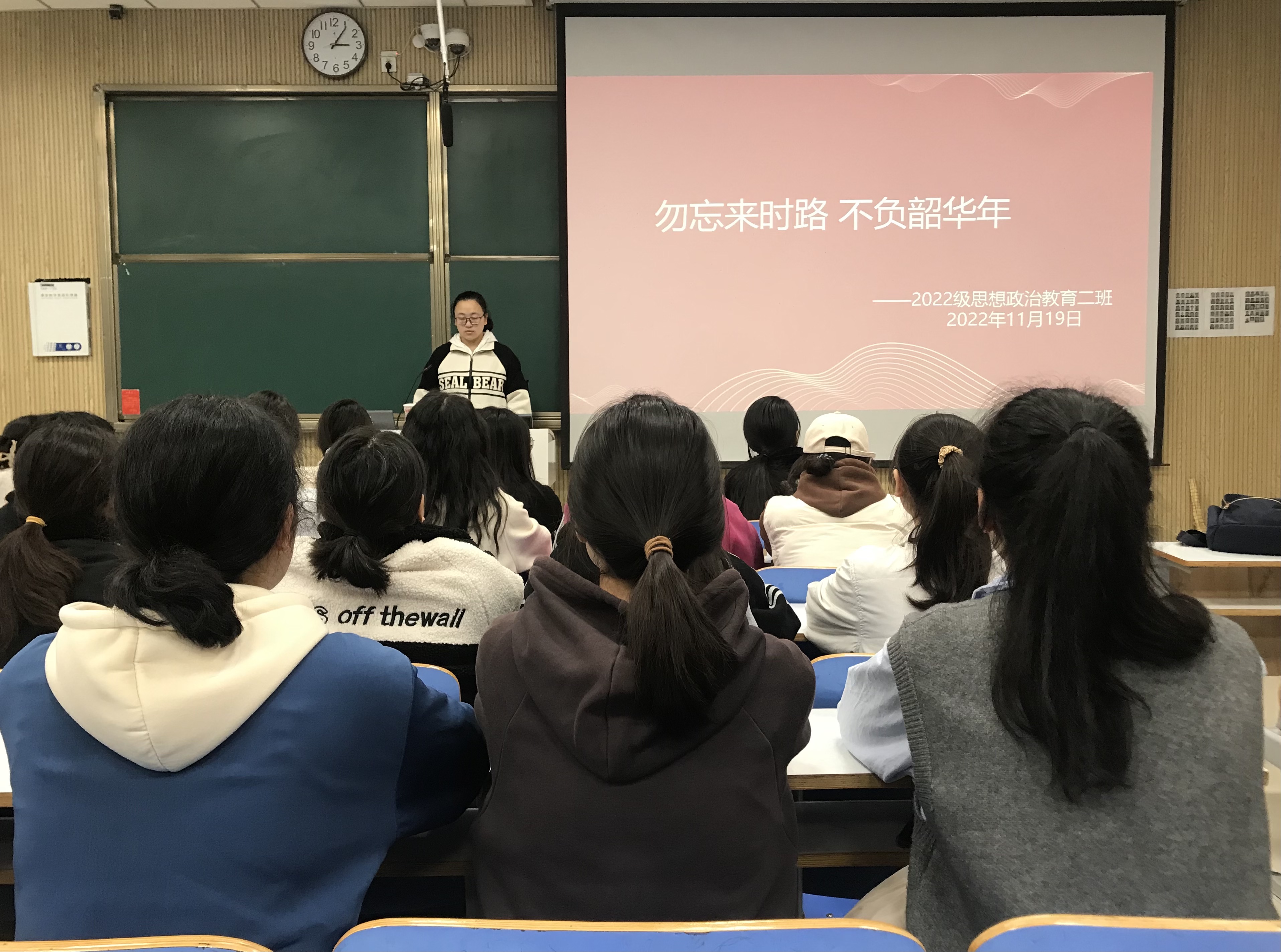 为进一步激发大学生的爱国情怀、凝聚奋进力量,11月19日下午,新葡萄8883官网AMG2022级思想政治教育二班在社科楼515教室召开“勿忘来时路 不负韶华年”主题班会。2022级思想政治教育二班全体同学共同参加会议。本次会议由团支书李佳音主持。