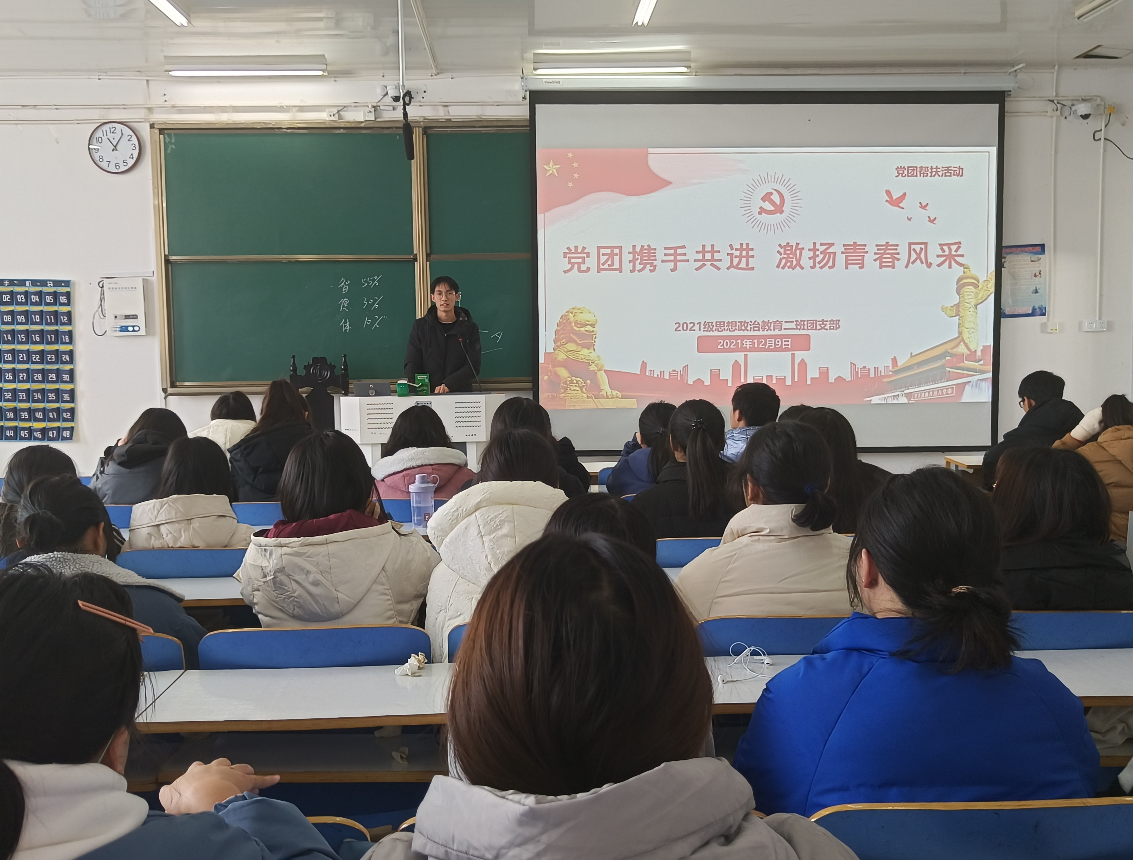 12月9日上午,新葡萄8883官网AMG2021级思想政治教育二班在社科楼516教室举办“党团携手共进,激扬青春风采”党团帮扶活动。王明亮、刘鹏及2021级思想政治教育二班全体团员参加此次活动。活动由团支书王婧欣主持。