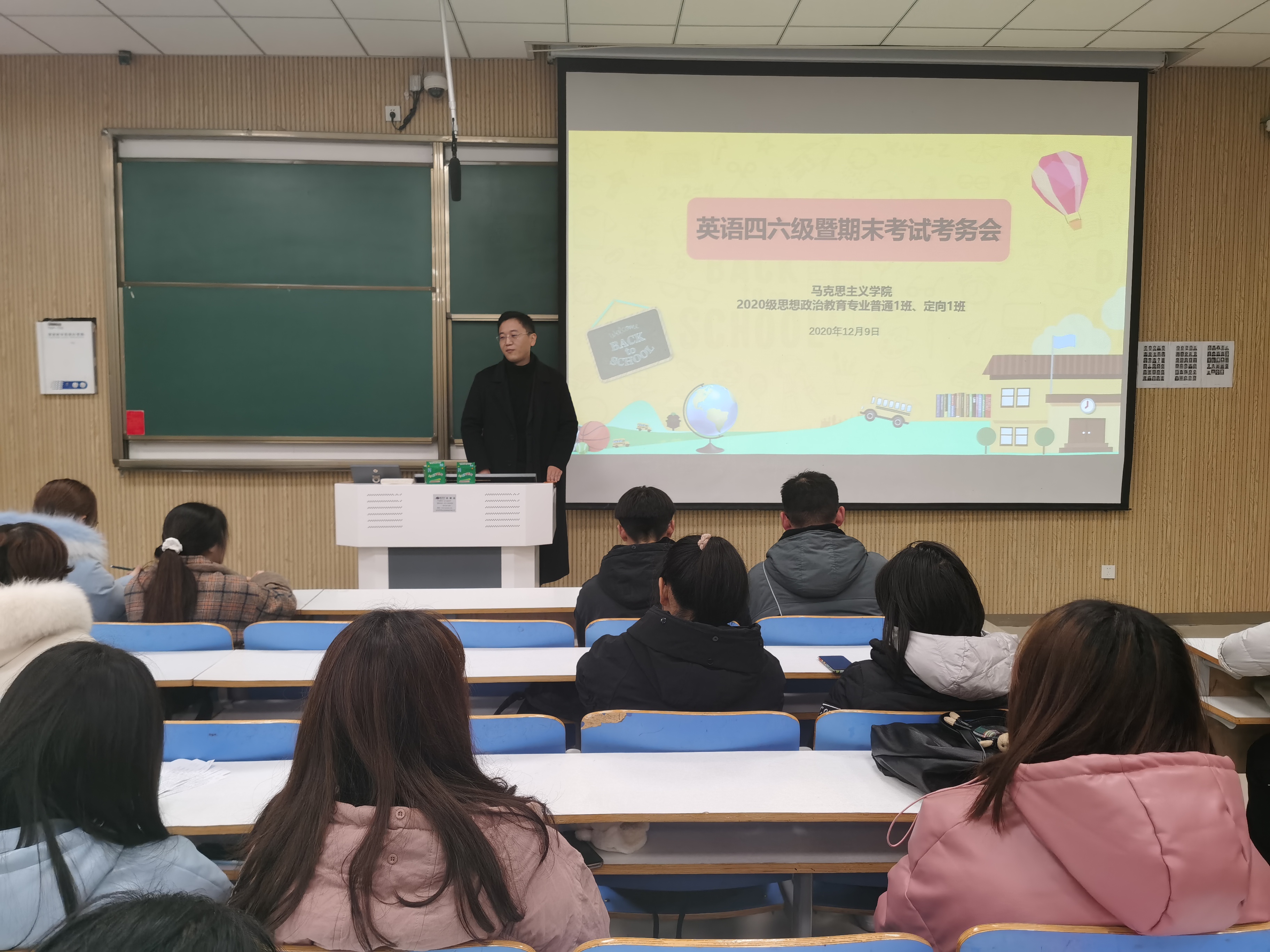 12月9日下午,新葡萄8883官网AMG2020级思想政治教育一班、定向一班在社科楼515教室顺利开展期末考试班级考务会,2020级思想政治教育一班、定向一班全体学生聆听了此次班会,班会由辅导员曹栋主持。