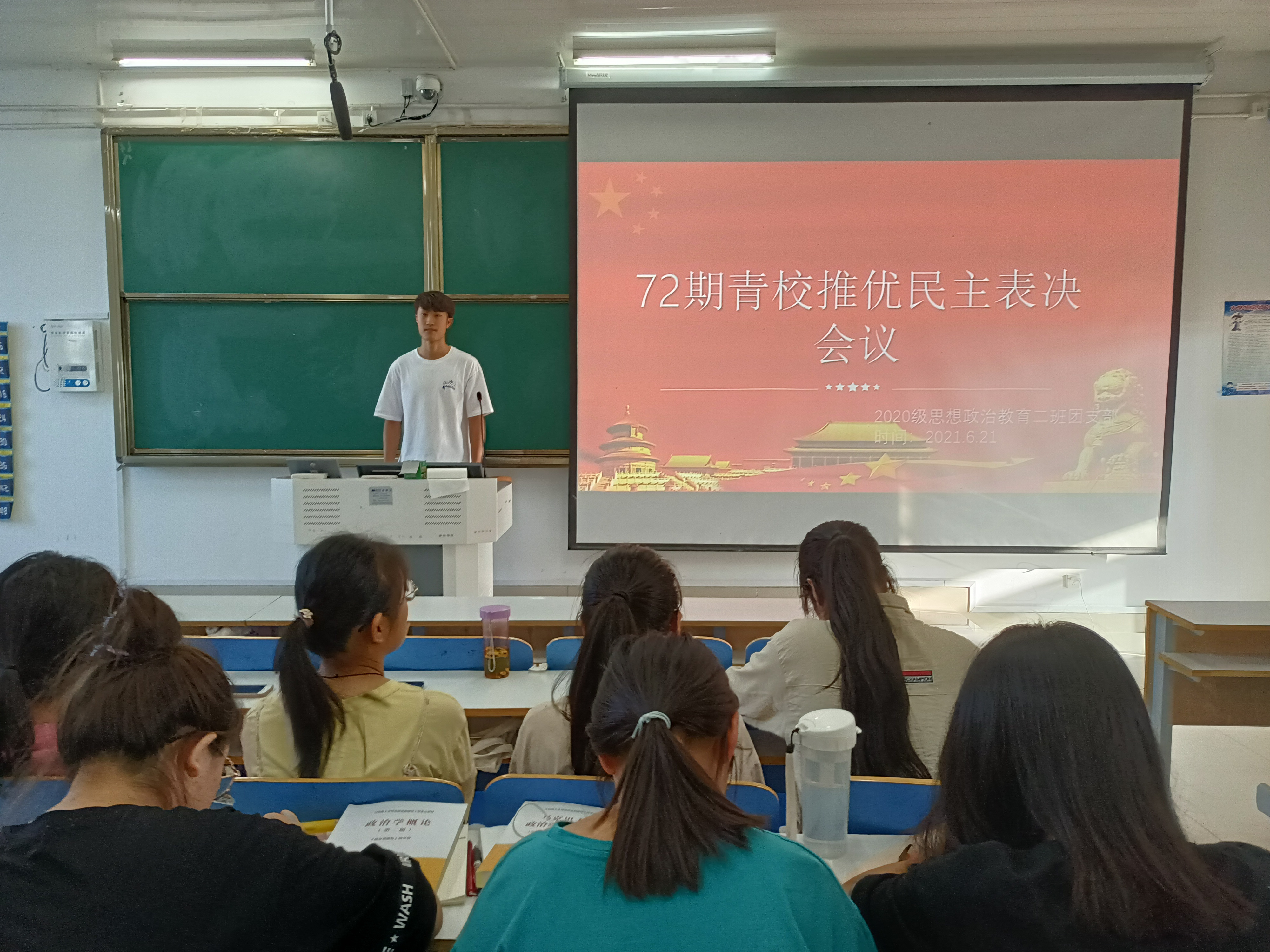 6月21日下午,新葡萄8883官网AMG2020级思想政治教育二班在社科楼514教室顺利召开第72期青校学员推优民主表决团支部大会。2020级思想政治教育二班全体团员共同参与本次会议。