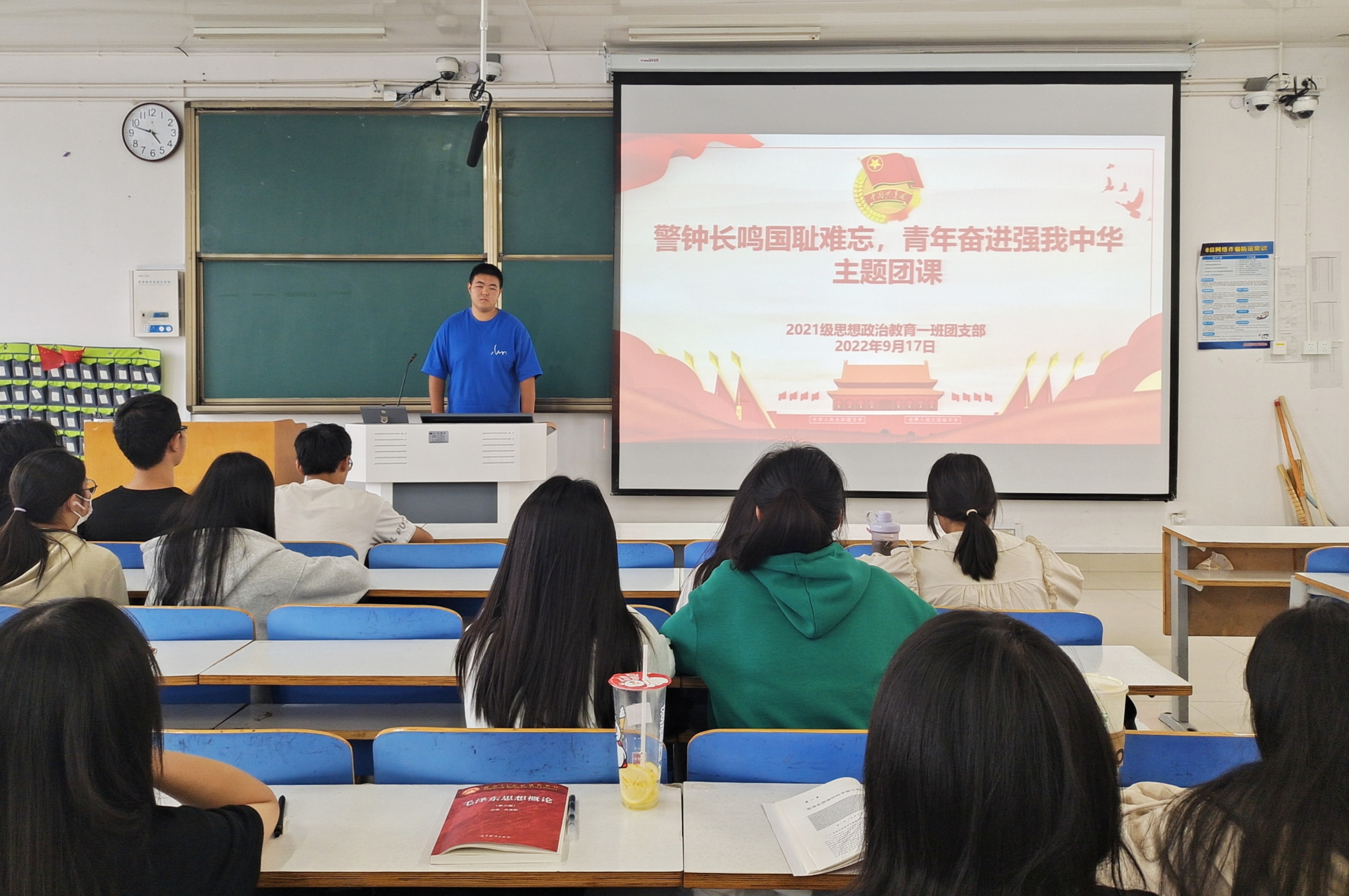 9月17日下午,新葡萄8883官网AMG2021级思想政治教育一班在社科楼514教室召开“警钟长鸣国耻难忘,青年奋进强我中华”主题团课。2021级思想政治教育一班全体团员共同参加了本次团课,团课由团支书戴翰林主持。