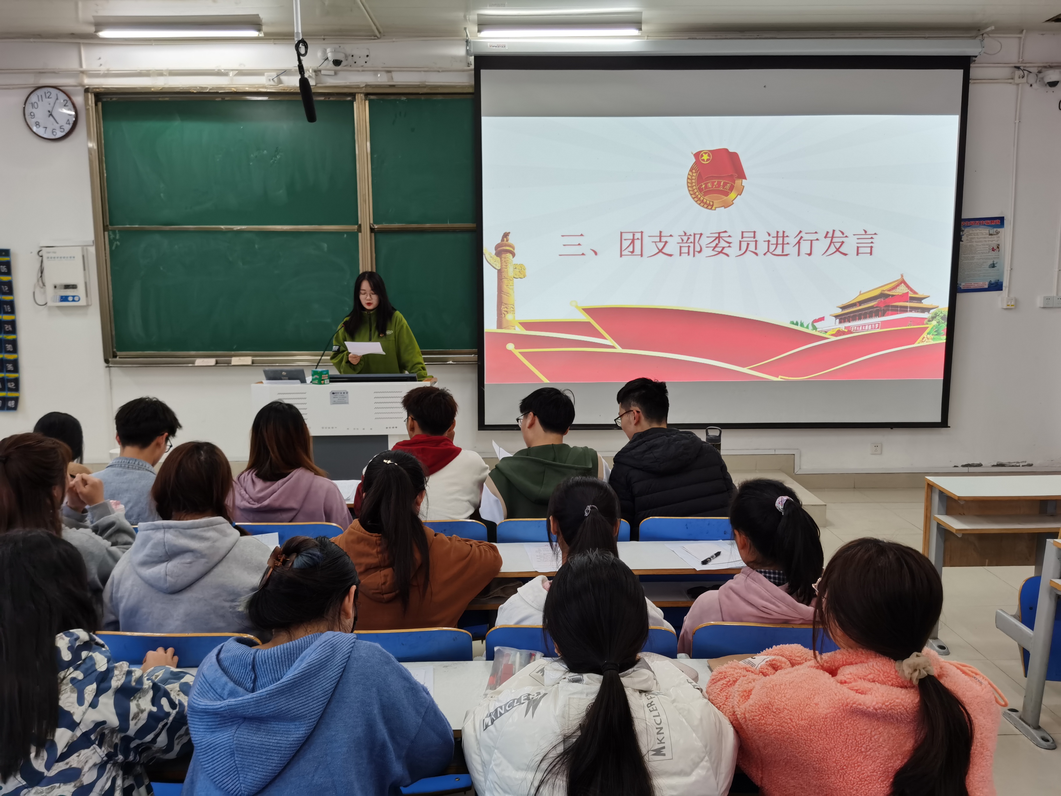 首先,卢茜雨宣讲了本次会议的主题及要求,并带领全体团员共同唱响团歌。随后,团支部委员及团支部代表团员从学习材料情况、学习收获、肯定自我、批评自我、改进方向等多个方面进行发言。其中,团支部委员卢茜雨介绍了班级团支部的建设发展情况,并指出了工作中存在的问题与不足。团支部代表团员申畅畅向同学们汇报了自己大一学年的学习与工作情况,并指出今后要努力的方向。接着,全体团员进行团员先进性民主测评投票。最后,曹栋对本次的组织生活会作出总结。他强调,全体团员要积极进行批评和自我批评,认真查摆自身存在的问题,树立大局意识,增强政治观念,不断完善自我。同时,他勉励全体团员要把握好宝贵的学习时间,努力夯实专业基础,提升专业素养,充分发挥共青团员的模范带头作用。