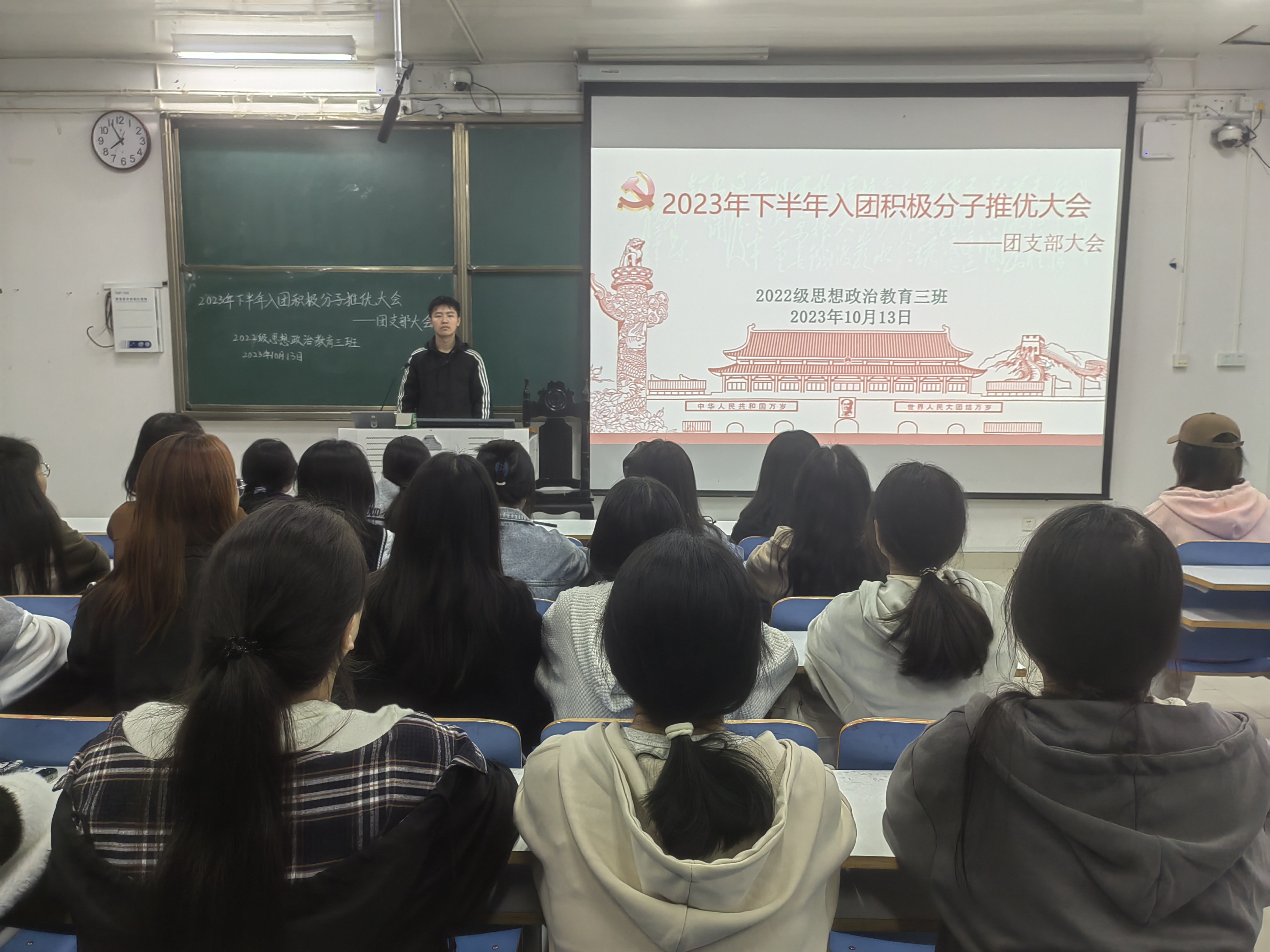 10月13日上午,新葡萄8883官网AMG2022级思想政治教育三班在514教室开展入团积极分子推优大会。新葡萄官网2022级思想政治教育三班全体团员共同参与此次推优大会。大会由团支书余浩洋主持。