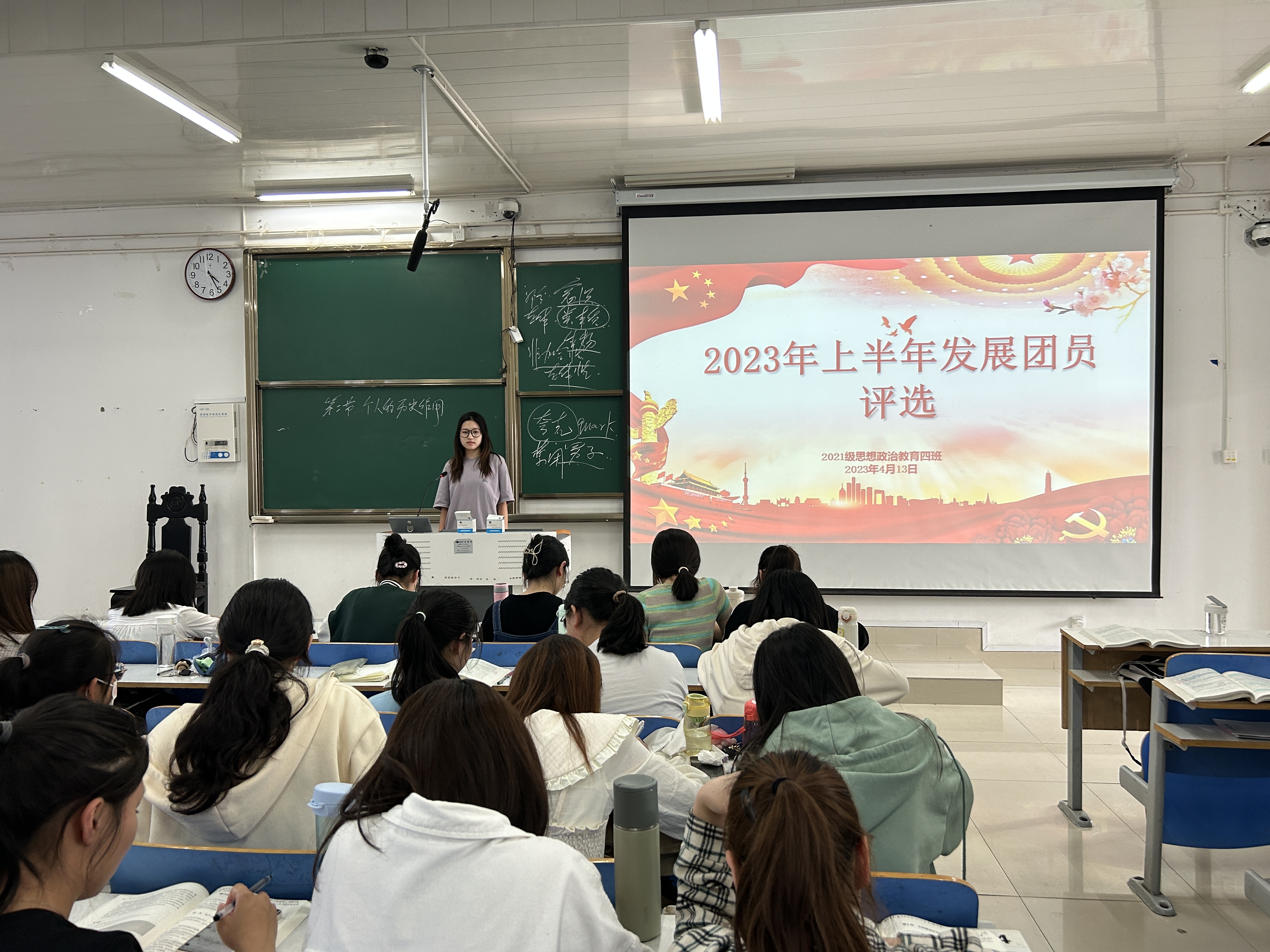 4月13日下午,新葡萄8883官网AMG2021级思想政治教育四班在社科楼514教室召开2023年下半年发展团员民主评议会。2021级思想政治教育四班全体团员共同参会。会议由团支书刘珂含主持。