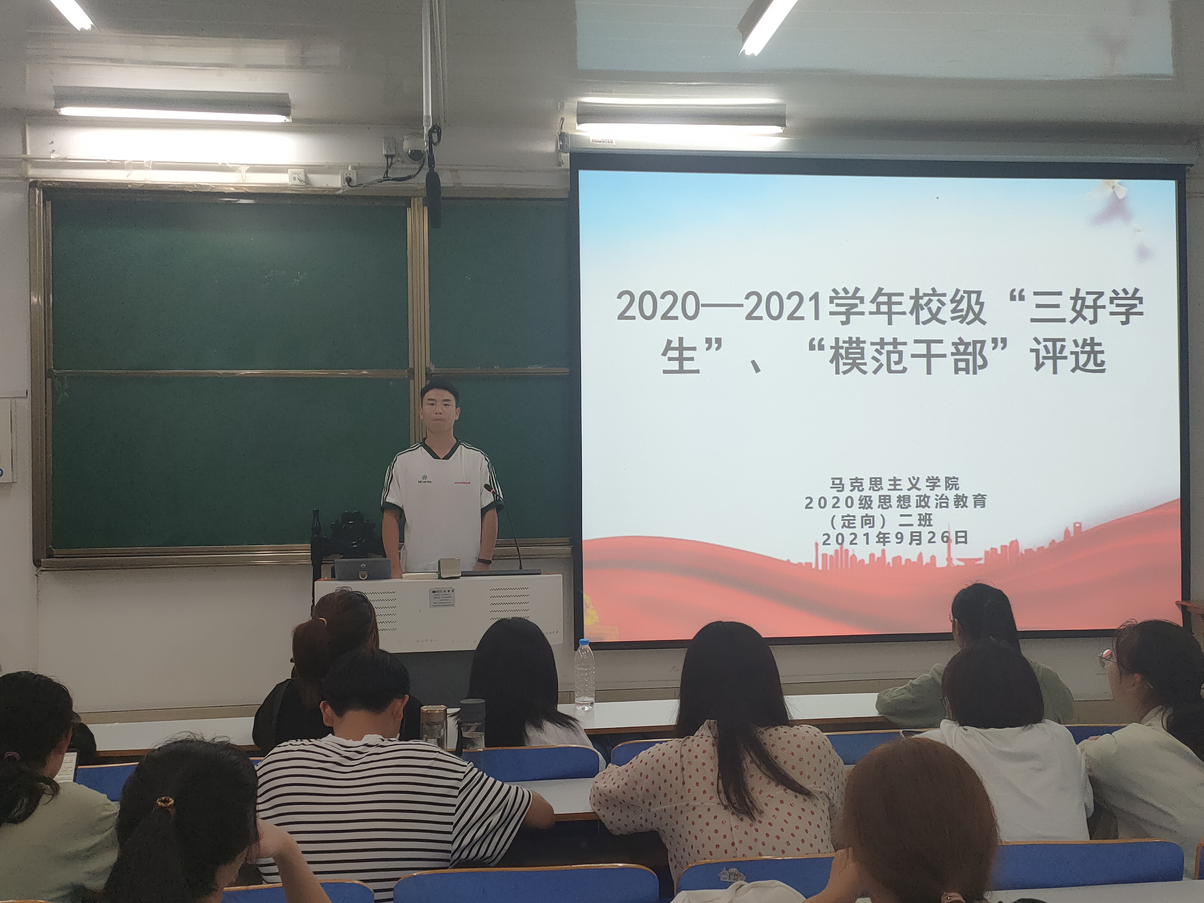 9月26日晚上,新葡萄8883官网AMG2020级思想政治教育定向二班“三好学生”“模范干部”评选会在社科楼514教室顺利召开。定向二班全体同学参与本次会议。