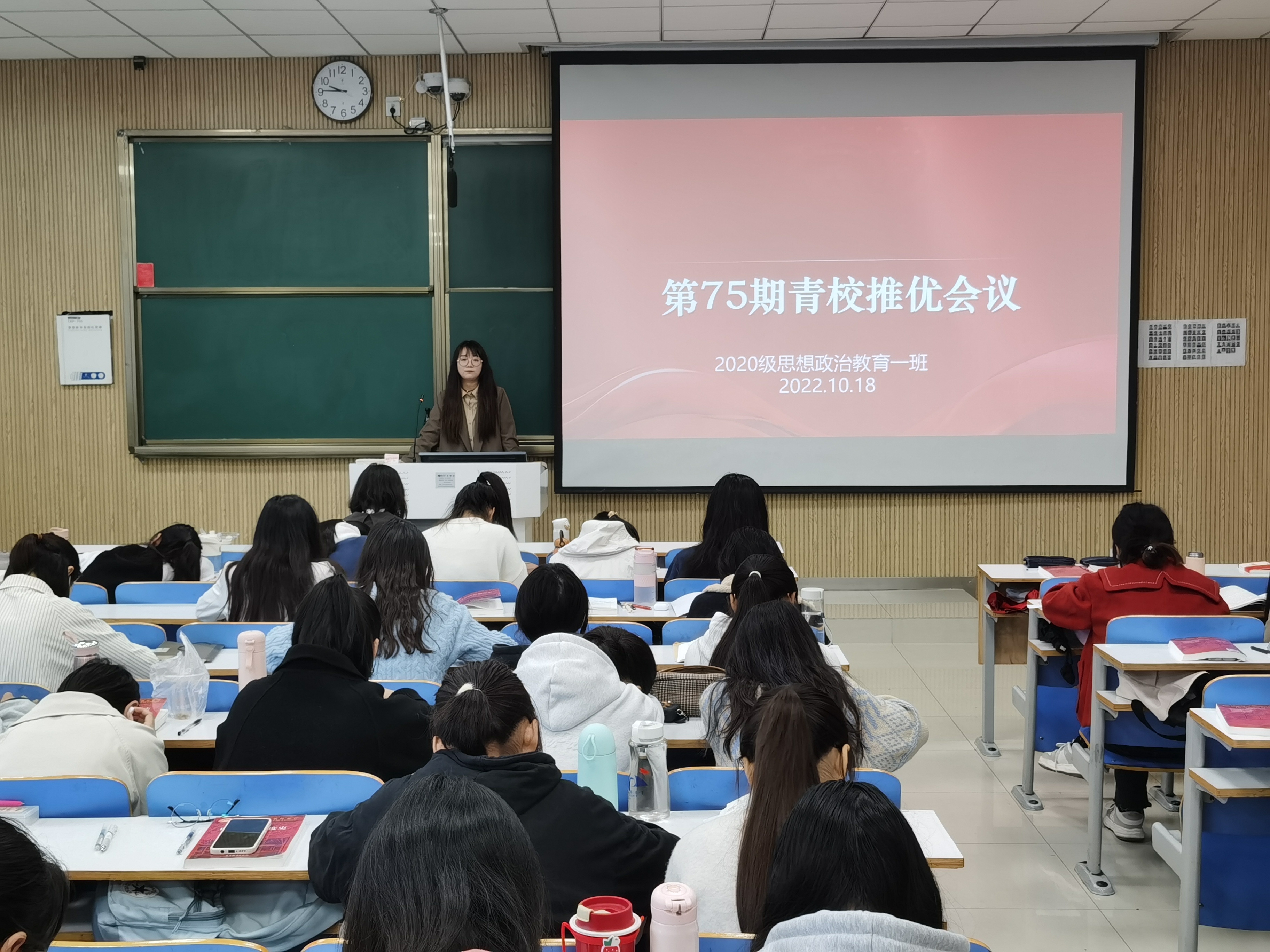 10月18日上午,新葡萄8883官网AMG2020级思想政治教育一班团支部在社科楼515教室顺利召开第73期青校学员推优选举团支部大会。2020级思想政治教育一班全体团员共同参与本次推选大会。本次选举工作由团支书卢茜雨主持。