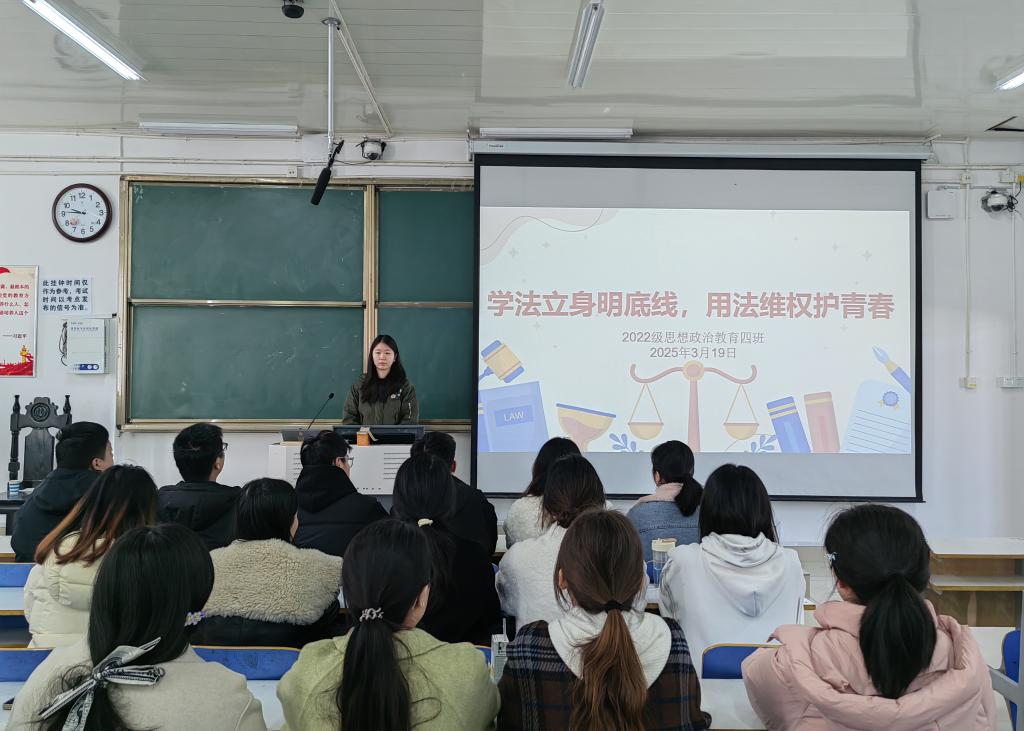 为增强学生的法治观念,培养学生的守法意识,3月19日上午,新葡萄8883官网AMG2022级思想政治教育四班在社科楼514教室组织召开“学法立身明底线,用法维权护青春”主题班会。新葡萄官网2022级思想政治教育四班全体成员参与本次班会。本次班会由班长牛志杰主持。